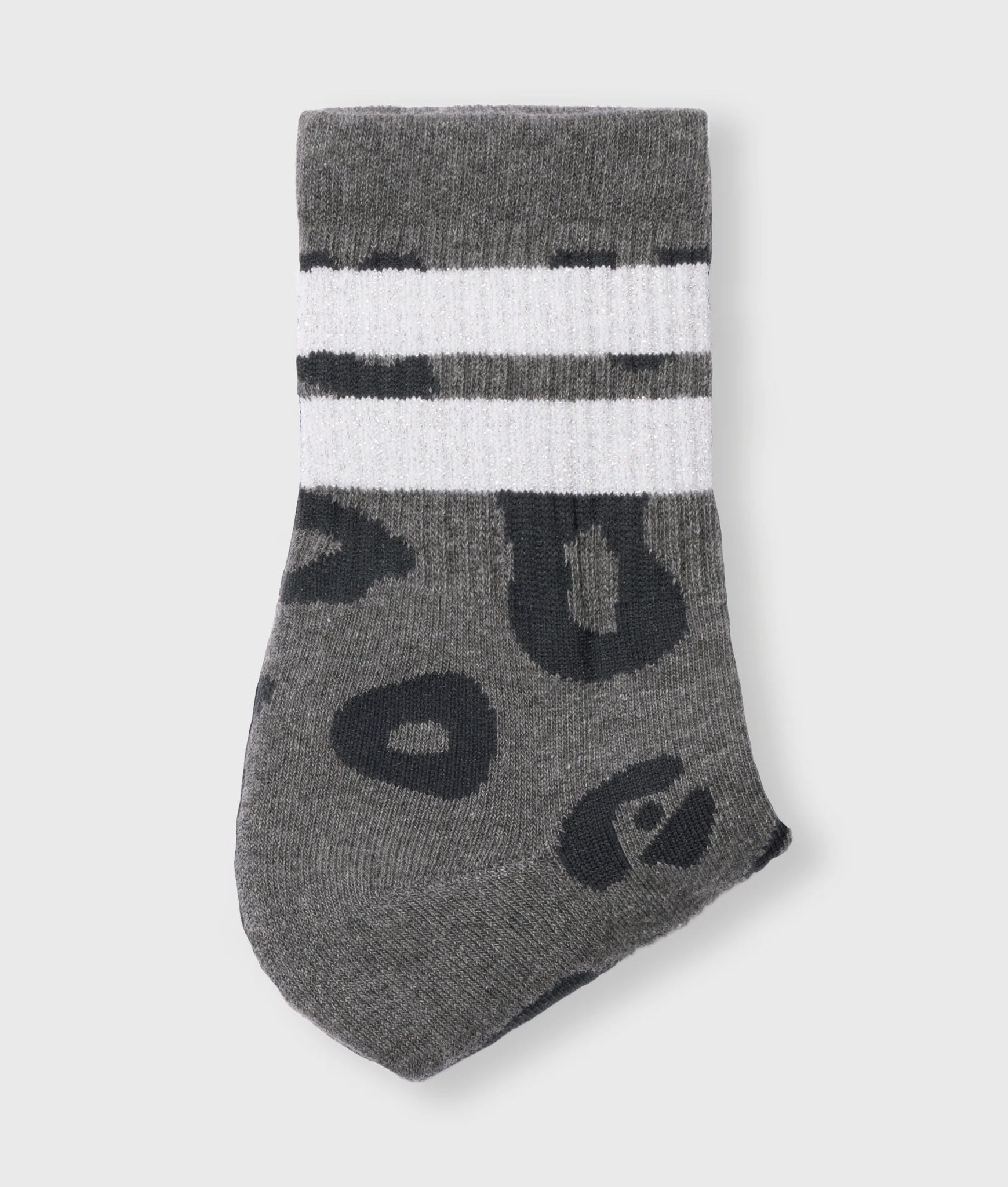 Socken aus Rippenstrick mit Leopardenprint und Logo unter dem Fuß. Mit Rippenstricksaum und glänzenden Lurexdetails in Silber.