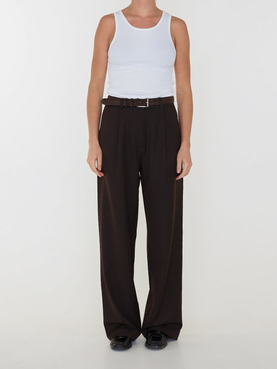 Ein klassischer Gürtel aus taupefarbenen Suede Leder mit einer matt gebürsteten silberfarbenen Schnalle.