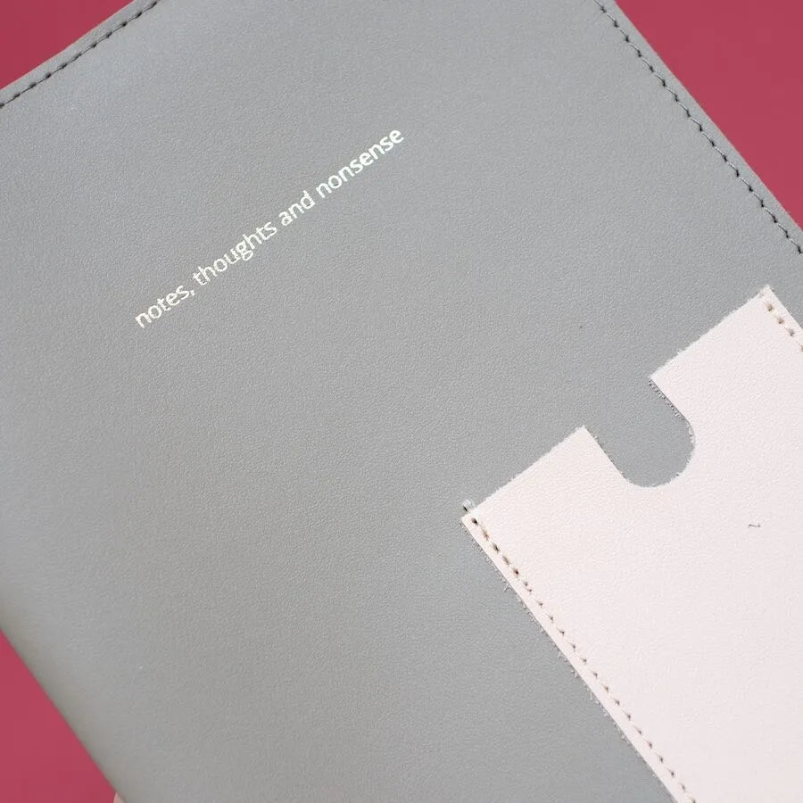 Schöne feste Lederhülle für Softcover-Notizbücher mit einer Tasche auf der Vorderseite in einer hellen Kontrastfarbe. Alle Softcover-Notebooks im A5-Format passen in dieses Cover.