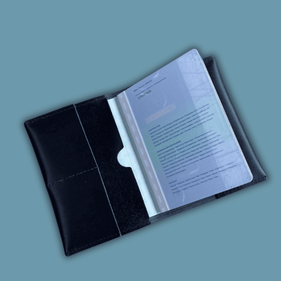 Passhalter aus weichem Leder für den stilvollen Urlaubsplaner. Entwickelt, um Ihren Reisepass, Ihre Pässe und Karten zu schützen. Es stellt sicher, dass Sie alles zur Hand haben, um reibungslos zu Ihrem Ziel zu segeln. In verschiedenen Farben mit Reisezitat in Gold.