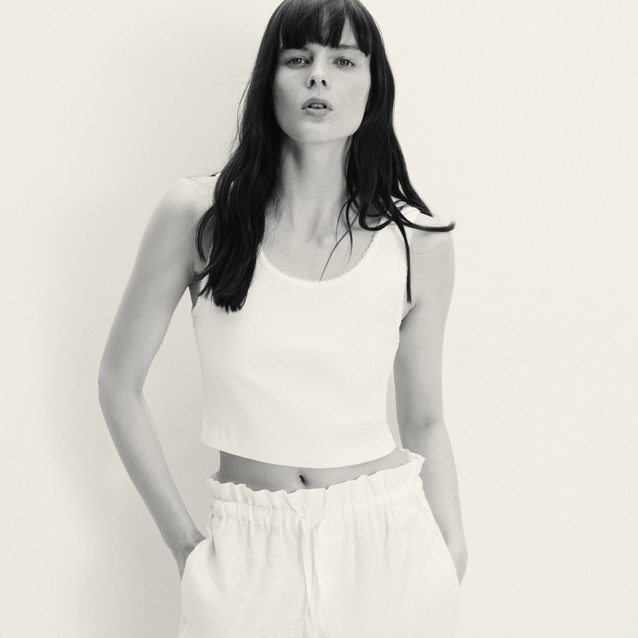 OLINA ist ein klassisches Tanktop mit Trägern und Rundhalsausschnitt, das eng anliegt und für eine elegante Linie sorgt. Der leichte Jersey aus reiner Baumwolle in Rippenstruktur vermittelt mit seiner matten Optik und weichen Haptik ein Gefühl von sommerlicher Leichtigkeit. Besonders ist die random bleach Färbetechnik, die einen gewaschenen Used-Look erzeugt und an eine Denimstruktur erinnert.