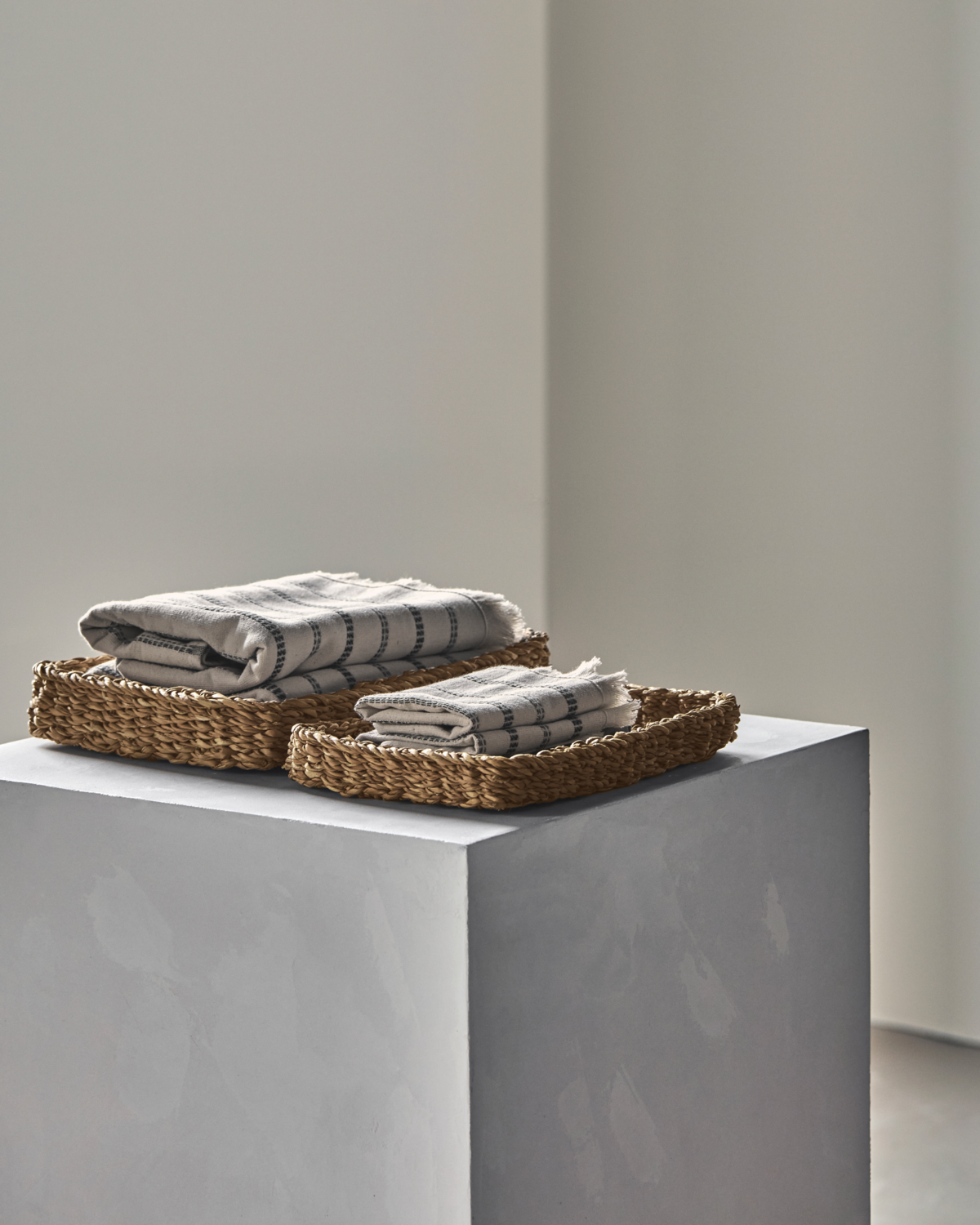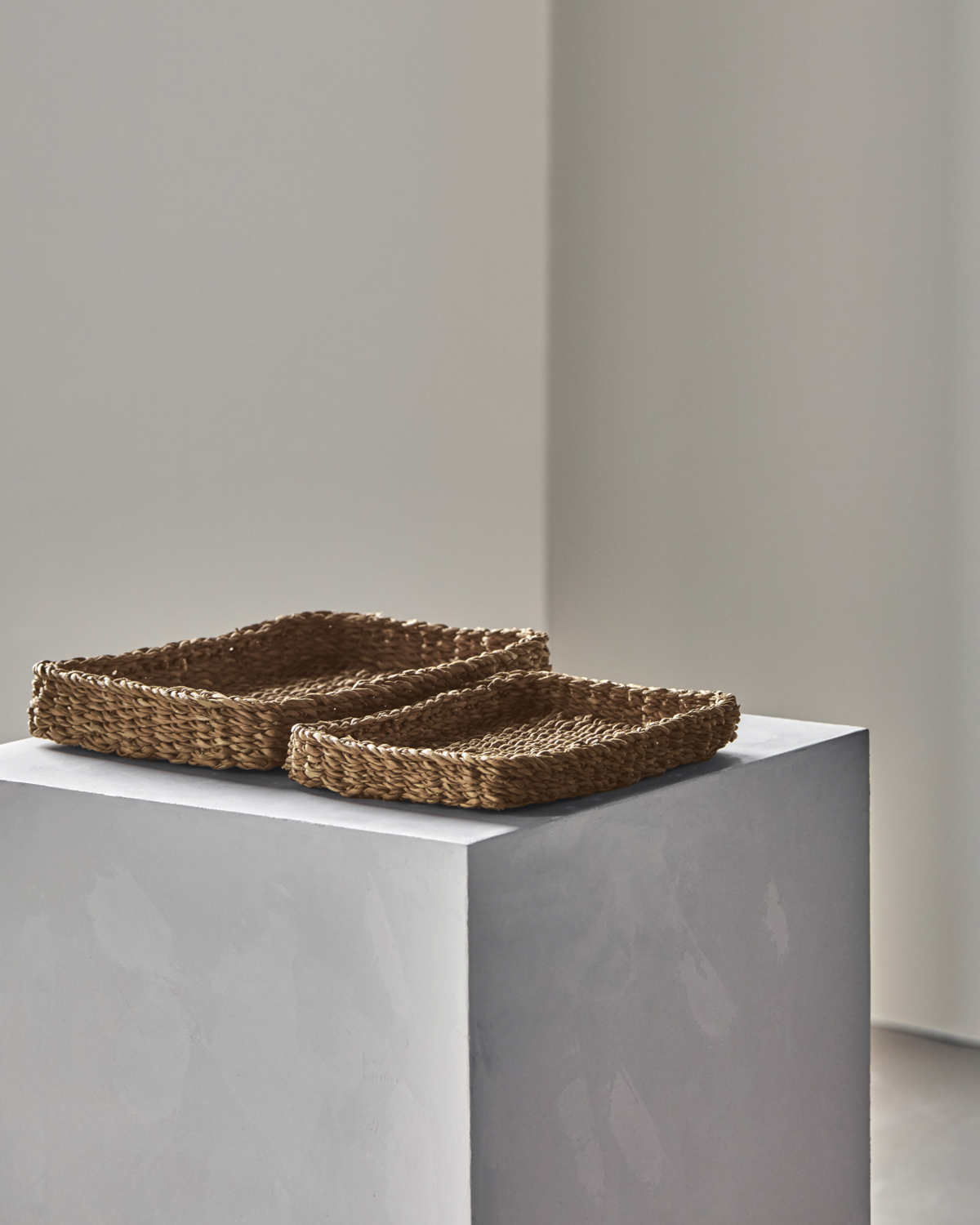 Dieses Zweierset stilvoller Tabletts aus natürlichem Seegras bringt Ordnung und Charme in Ihr Heim. Ob im Badezimmer für Handtücher oder im Flur für Schlüssel – die handgeflochtenen Tabletts verleihen jedem Bereich eine warme, organische Note.