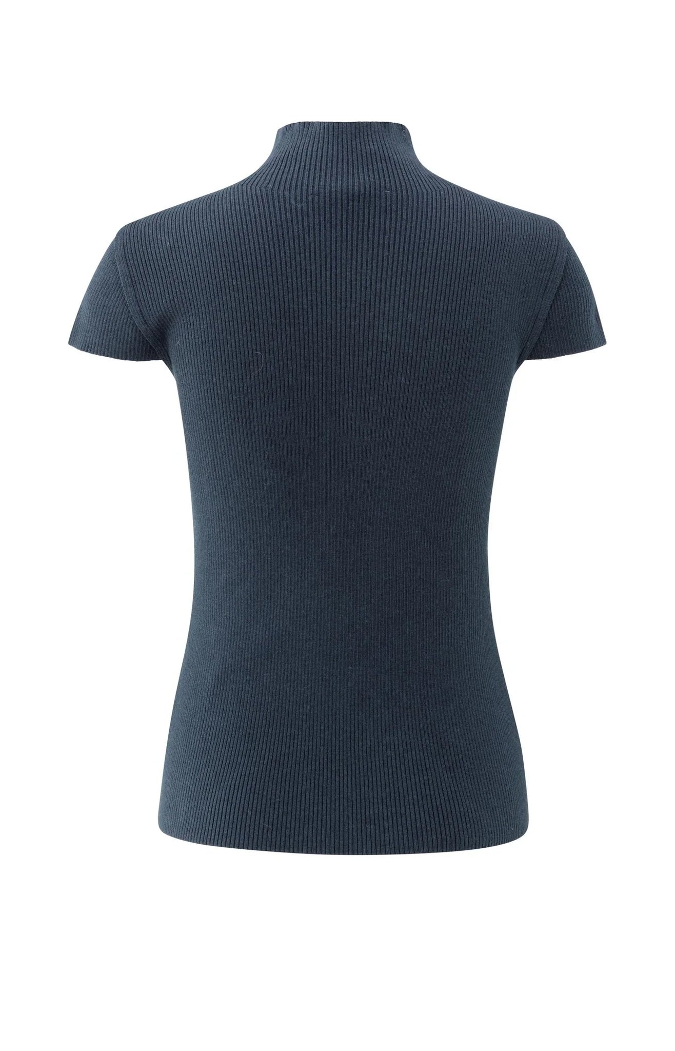 Dieses eng anliegende Oberteil aus weichem geripptem Stoff hat einen Stehkragen und kurze Ärmel. Das dezente Nahtdetail auf der Vorderseite verleiht ihm eine elegante Note. Dank seinem dehnbaren Stoff und seiner schmeichelhaften Passform eignet sich dieses vielseitige Modell perfekt für Lagenlooks, es lässt sich aber auch für sich allein tragen. Es passt sowohl zu legeren als auch zu raffinierten Outfits.