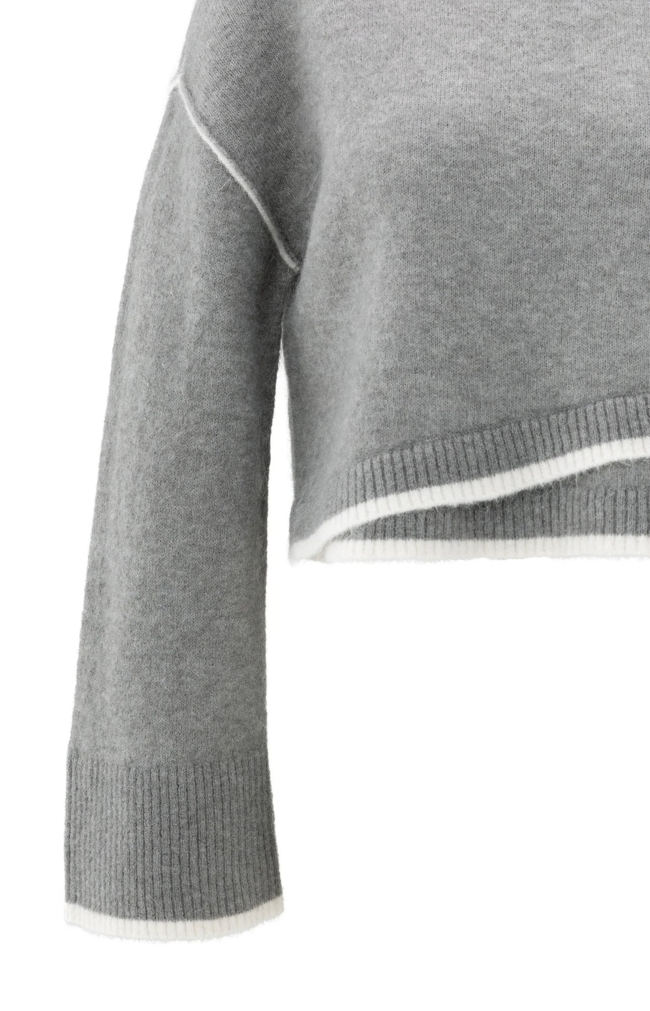 Dieser weiche Strickpullover begeistert mit einer kurzen, geraden Passform und dezenten kontrastierenden Linien an Saum, Bündchen und Schulternähten. Er hat einen Rundhalsausschnitt und überschnittene Schultern und bietet einen lässigen Look. Das diagonale Design verleiht ihm eine verspielte Note. Ein modernes Kleidungsstück, das Komfort und Stil kombiniert.