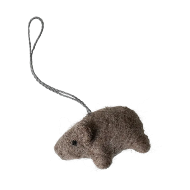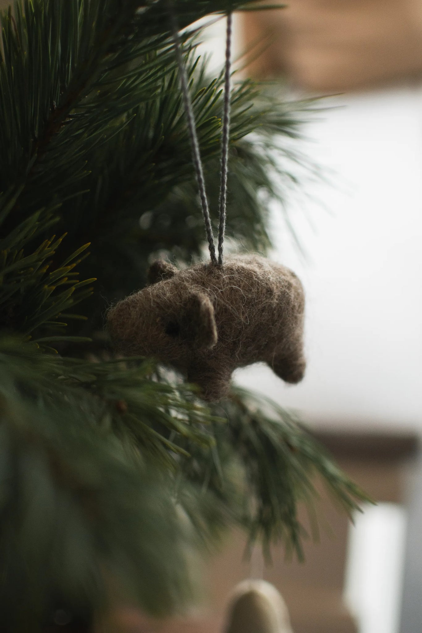 Kleines Schweinchen mit Anhänger aus Wolle gefilzt.