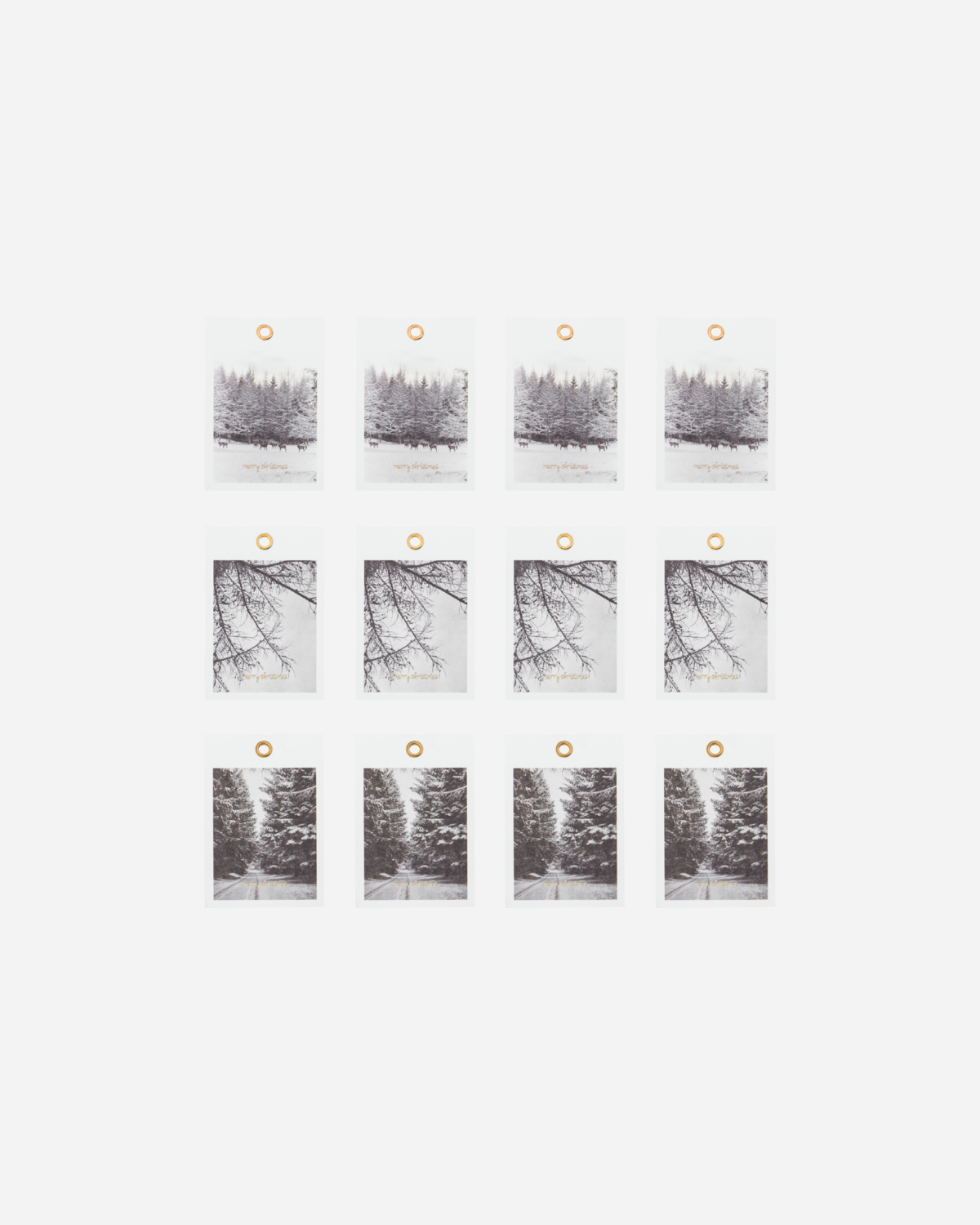 "Verleihen Sie Ihren Weihnachtsgeschenken einen eleganten Touch mit diesen stilvollen Geschenkanhängern. Gefertigt aus weißem Papier, präsentieren sie wunderschöne Wintermotive und glitzernde Goldtexte. Perfekt für Geschenke an Ihre Liebsten.