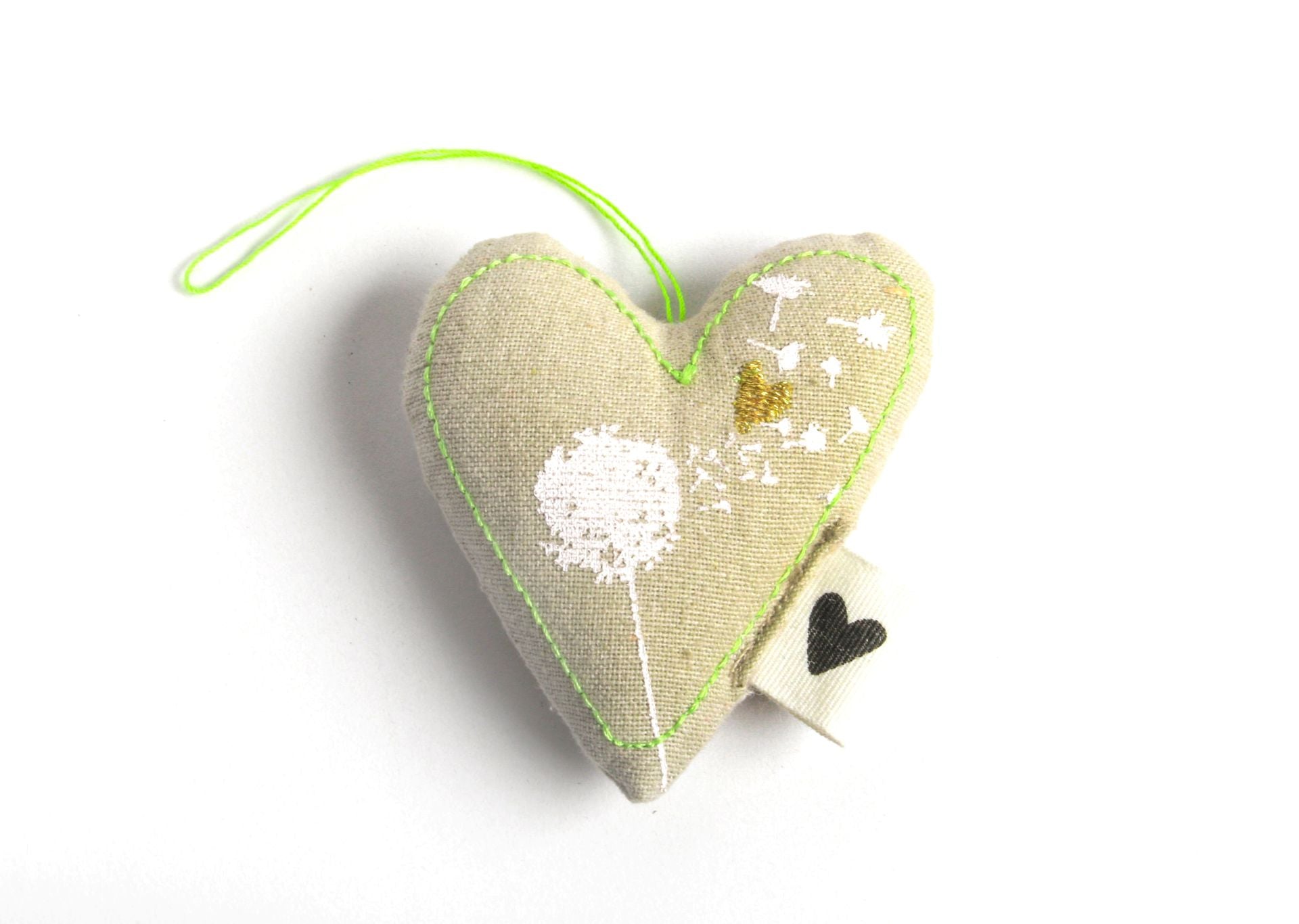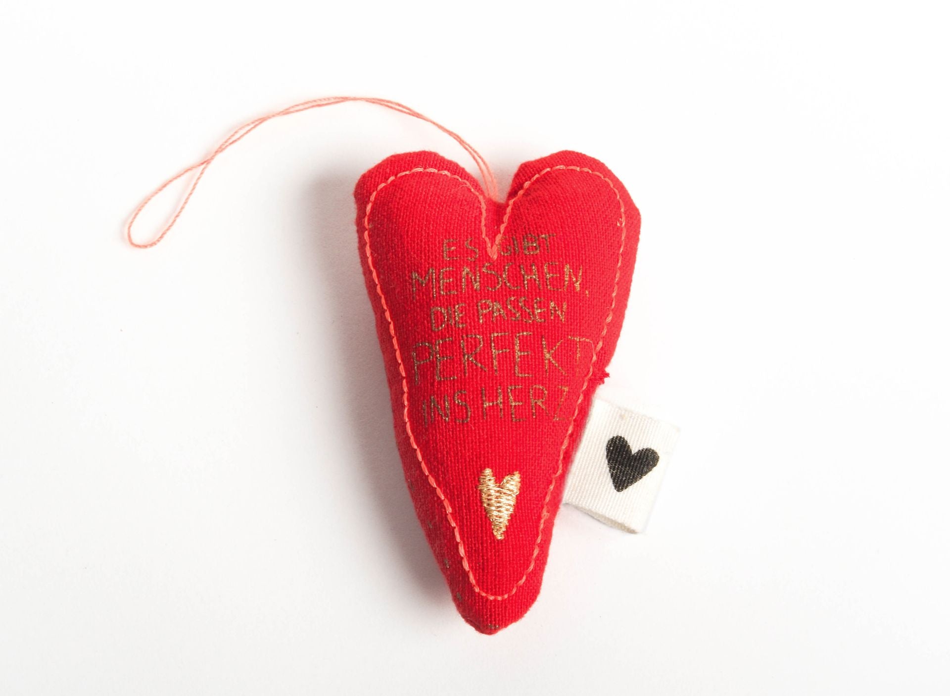 Stoffherz zum Aufhängen in verschiedenen Farben mit unterschiedlichen Stickereien.